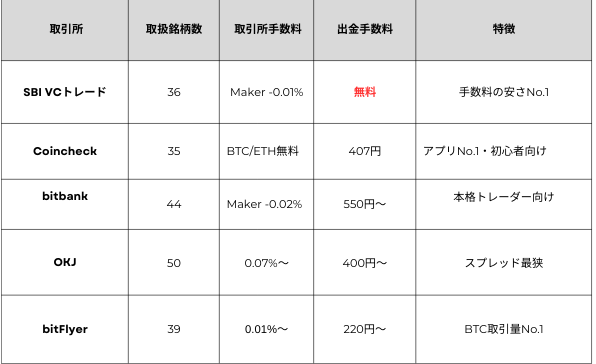 【詳細比較】国内主要仮想通貨取引所5社